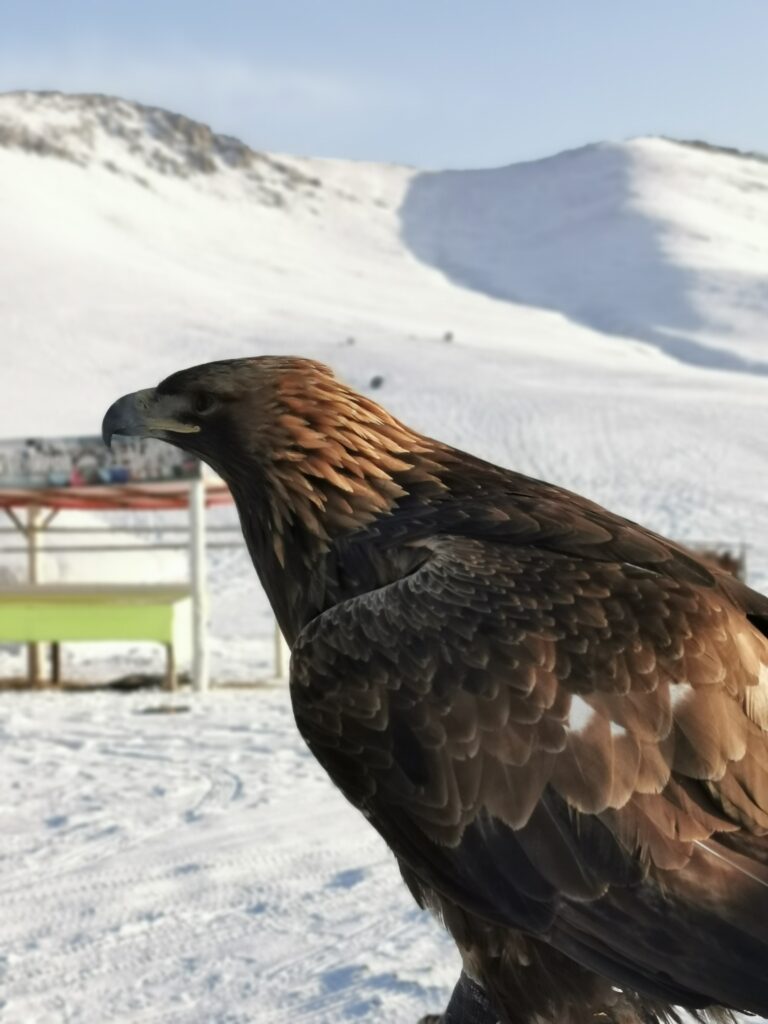 Am Ende blieb glücklicherweise auch noch ein wenig (leider zu wenig) Zeit in die Landschaft und Kultur einzutauchen. Spannend für mich: auf einem Foto sieht man, wie ich einen großen Steinadler halte – ich hatte durchaus Respekt vor diesem Wildtier. Mir wurde erklärt, dass es sich um einen zeitweilig domestizierten Adler handelt. Diese Tiere werden in der Mongolei, aber auch bereits vor 2000 Jahren in kasachischen Gebieten als Jagdadler ausgebildet. Schön finde ich, dass sie nach einigen Jahren wieder frei gelassen werden, damit sie sich wieder rehabilitieren und fortpflanzen können. Solche Momente auf Reisen liebe ich an meiner Arbeit. Und: ich werde nicht das letzte Mal in diesem wundervollen Land gewesen sein! Danke an Ariuntsetseg Ganbold, die mir den Aufenthalt und diesen besonderen Tag ermöglicht hat!
